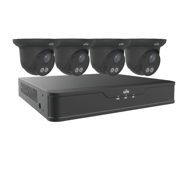 EK-S31P4DLT44T1-BK Uniview Dual Light 4 Channel Surveillance Kit with (4) 4MP Dual Light Turret Domes in Black, NDAA